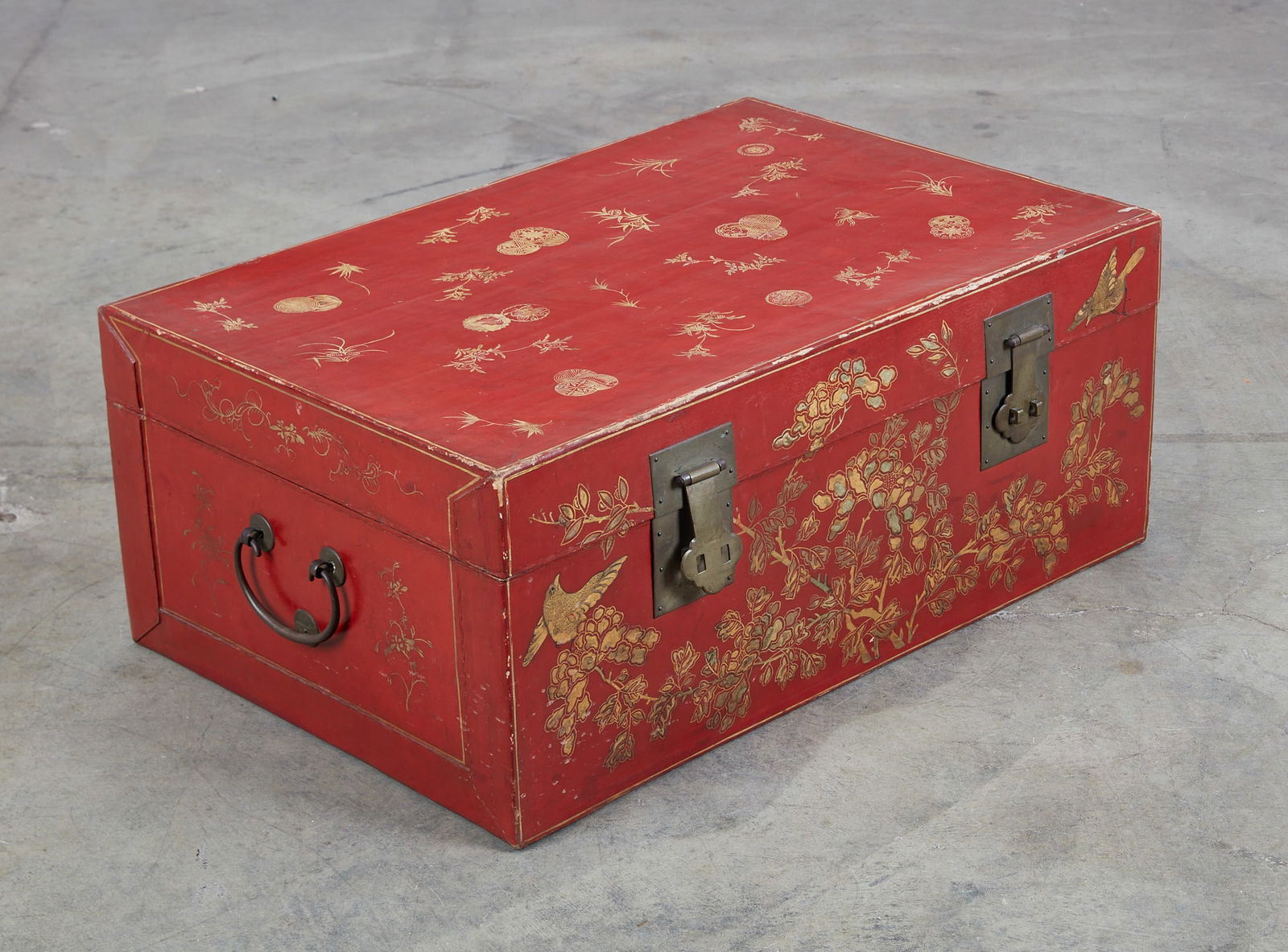 A Chinese red lacquered trunk
