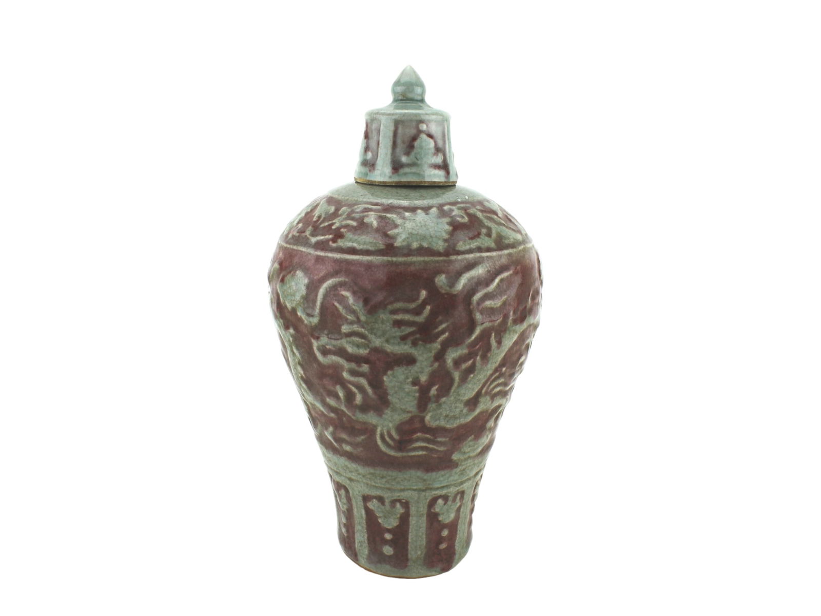 A CHINESE RED UNDERGLAZE LIDDED VASE