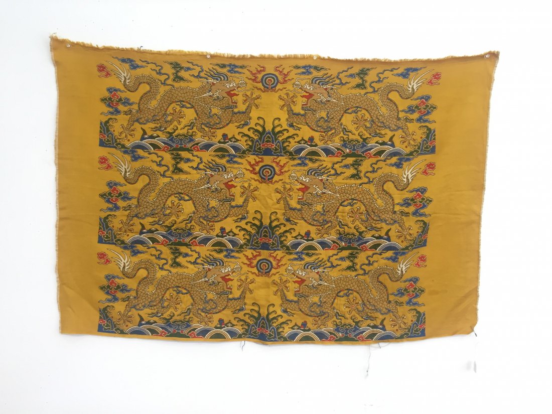 AN IMPERIAL 'TWO DRAGONS' SILK BROCADE FRAGMENT, MING DYNASTYMar 12, 2026Late Qing Dynasty, Imperial Yellow Satin Informal Robe with Hidden Dragon MedallionsMar 02, 2026A Chinese Imperial-Style Silk Dragon Panel, Five-Clawed Dragon Amid Clouds2 days LeftA Fine Qing Bright Yellow Silk Brocade Length Woven with Gold Phoenix MedallionsMar 08, 2026Li Long Bei Dragon Cover, Hainan Island, South China, Qing Period5 days LeftA CHINESE EMBROIDERED DRAGON PANELMar 01, 2026A Chinese woven silk dragon panel2 days LeftLi Long Bei Dragon Cover, Hainan Island, South China, Qing Period5 days LeftCourt robe China, Qing dynasty, 19th century106 Lots AwayANTIQUE CHINESE YELLOW EMBROIDERED TAPESTRYMar 08, 2026Dragon BrocadeMar 05, 2026A Fine Qing Bright Yellow Brocade Jifu Robe Embroidered with PhoenixesMar 08, 2026Seed embroidery with auspicious clouds and dragon patterns in bright yellow groundMar 15, 2026Unique Vintage Tibetan Dragon Rug Hand-Knotted Wool 3'4 x 5'7 Folk Art6 days LeftA Rare Dragon and Eight Treasures Pattern BrocadeMar 15, 2026CHINESE SILK EMBROIDERED DRAGON PANEL, LATE 19TH CENTURY2 days Left