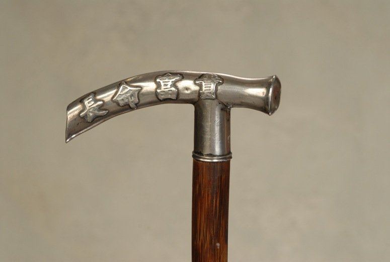 A Chinese silver cane with Chinese characters