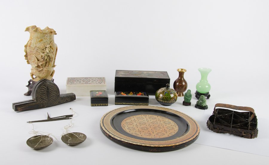 Lot of Seven Hand Painted Wood & Paper Mache Boxes5 days LeftLot of sterling silver accessories and tableware. To include: Chinese wise man figural shakers, O.Mar 01, 2026Estate Lot of 5 Antique Chinese & Bronze: Box, Bottle, Tray, Vase & Leather WalletMar 15, 2026LOT OF 10 MISCELANIOUS GLASS AND PORCELAIN VASESFeb 22, 2026Collection of Asian Decorative Items.8 hrs LeftA Collection of Asian and Decorative Objects Including Chinese Inside-Painted Glass Snuff Bottles4 days LeftLarge Collection of Chinese Cloisonne Items, Vases, Bowls, and Boxes.1 day LeftTwo Ceramic Vases and Four Ceramic SculpturesFeb 24, 2026Group of Chinese Table Articles1 day LeftLarge Group of Asian Metalware and Decorative Objects.8 hrs LeftStudio Pottery by Various Makers Gordon Cooke, Yelland, and othersVintage Asian Decor and etc.Mar 02, 2026A miscellaneous collection of Japanese ceramics, glassware, Southeast Asian carved wood masks etc 322 hrs LeftA group of European ceramics, 20th centuryA Group of Asian Ceramics4 days LeftA Collection of Japanese Porcelain and European Ceramic Tea and Tableware4 days Left
