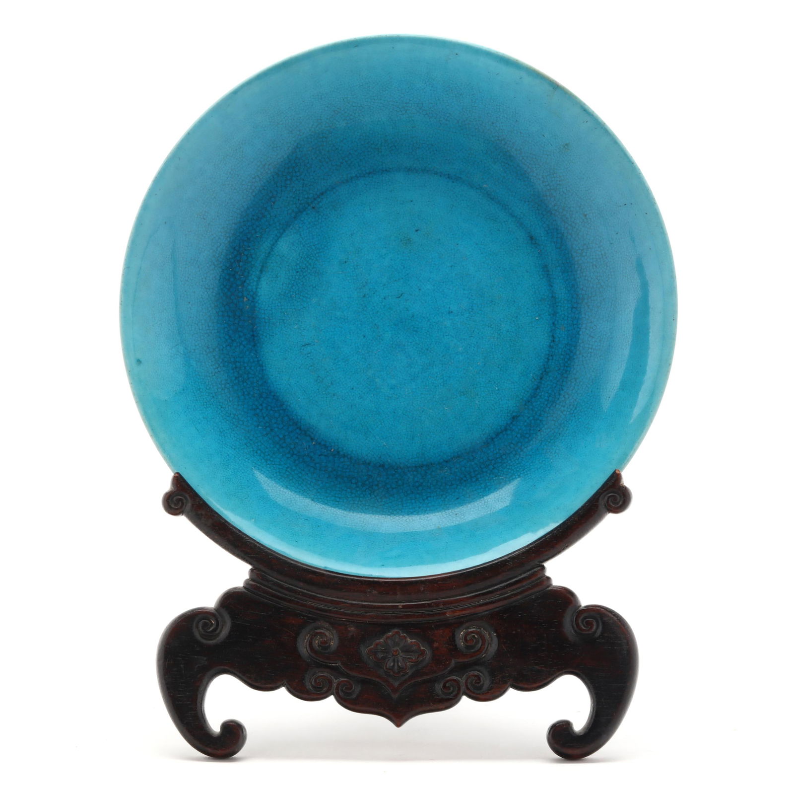 Large Chinese Monochrome Blue Glazed Charger w/ Stand