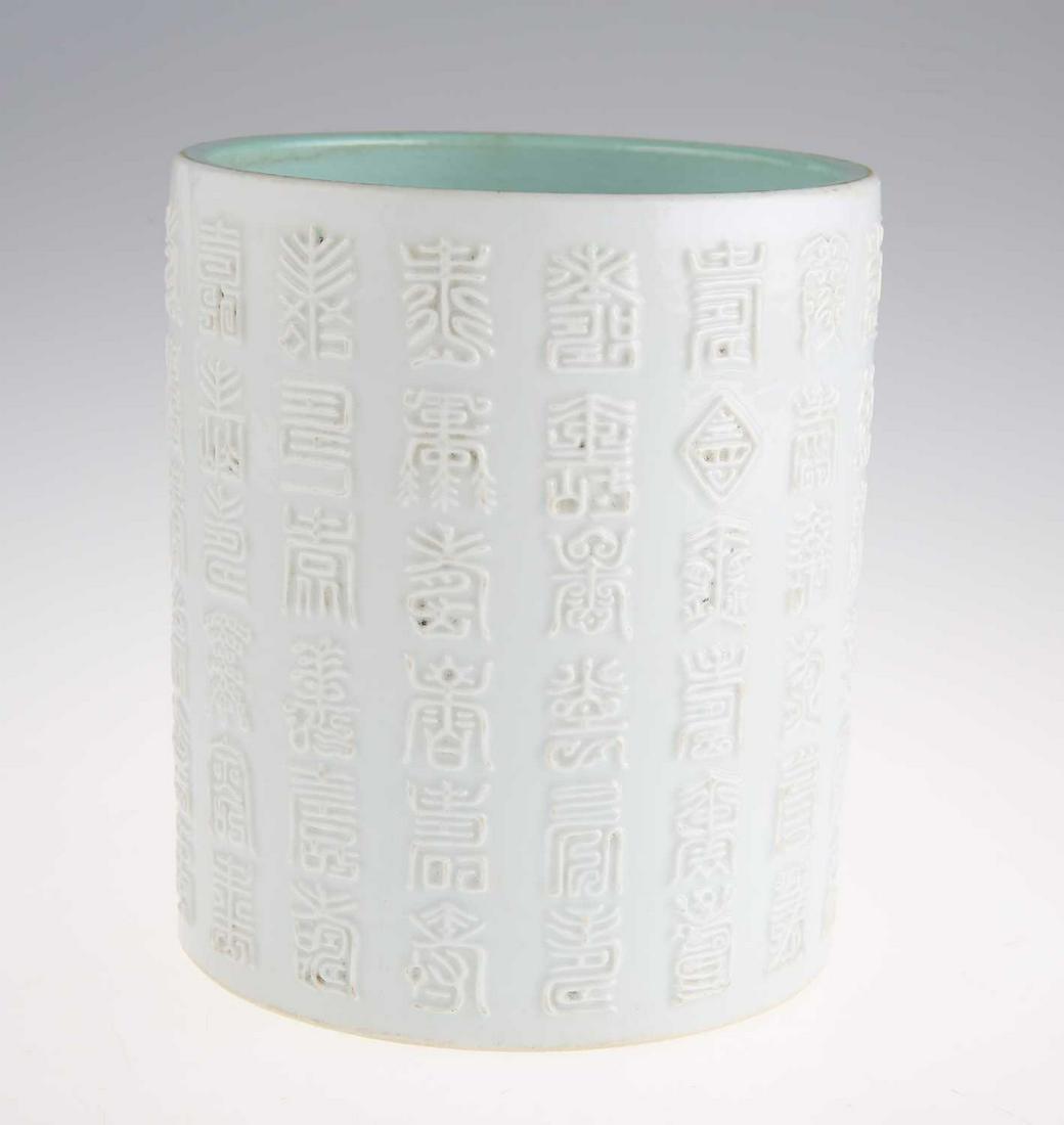 A CHINESE WHITE-GLAZED BRUSH-POT