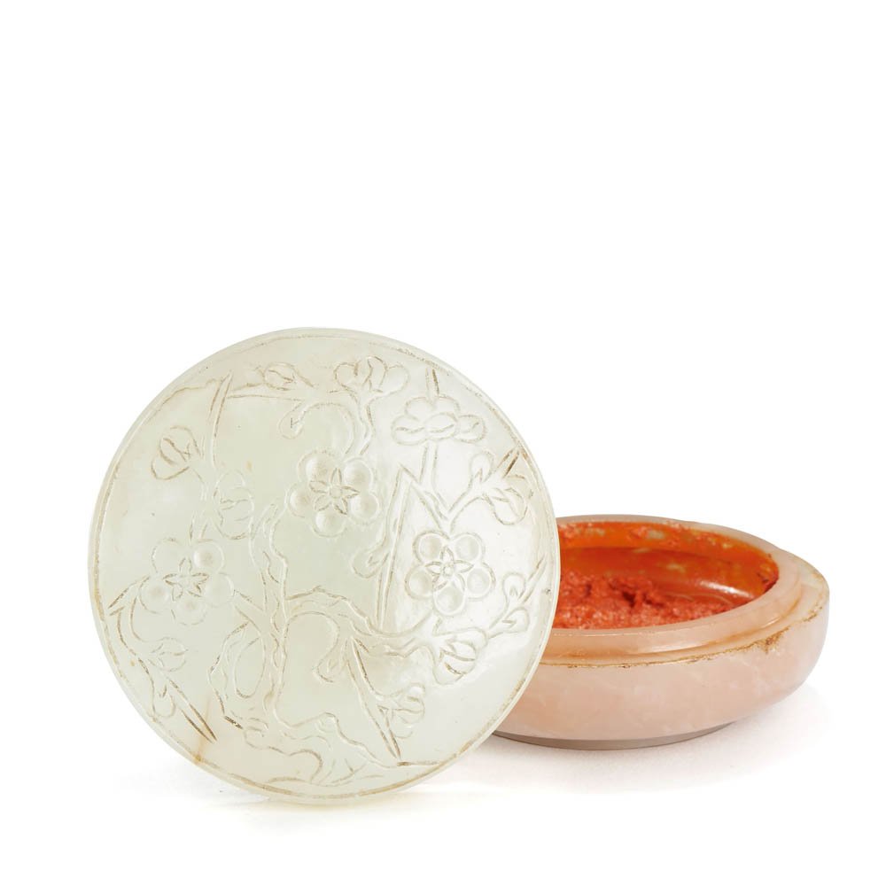 A CHINESE WHITE JADE PRUNUS SEAL-PASTE BOX
