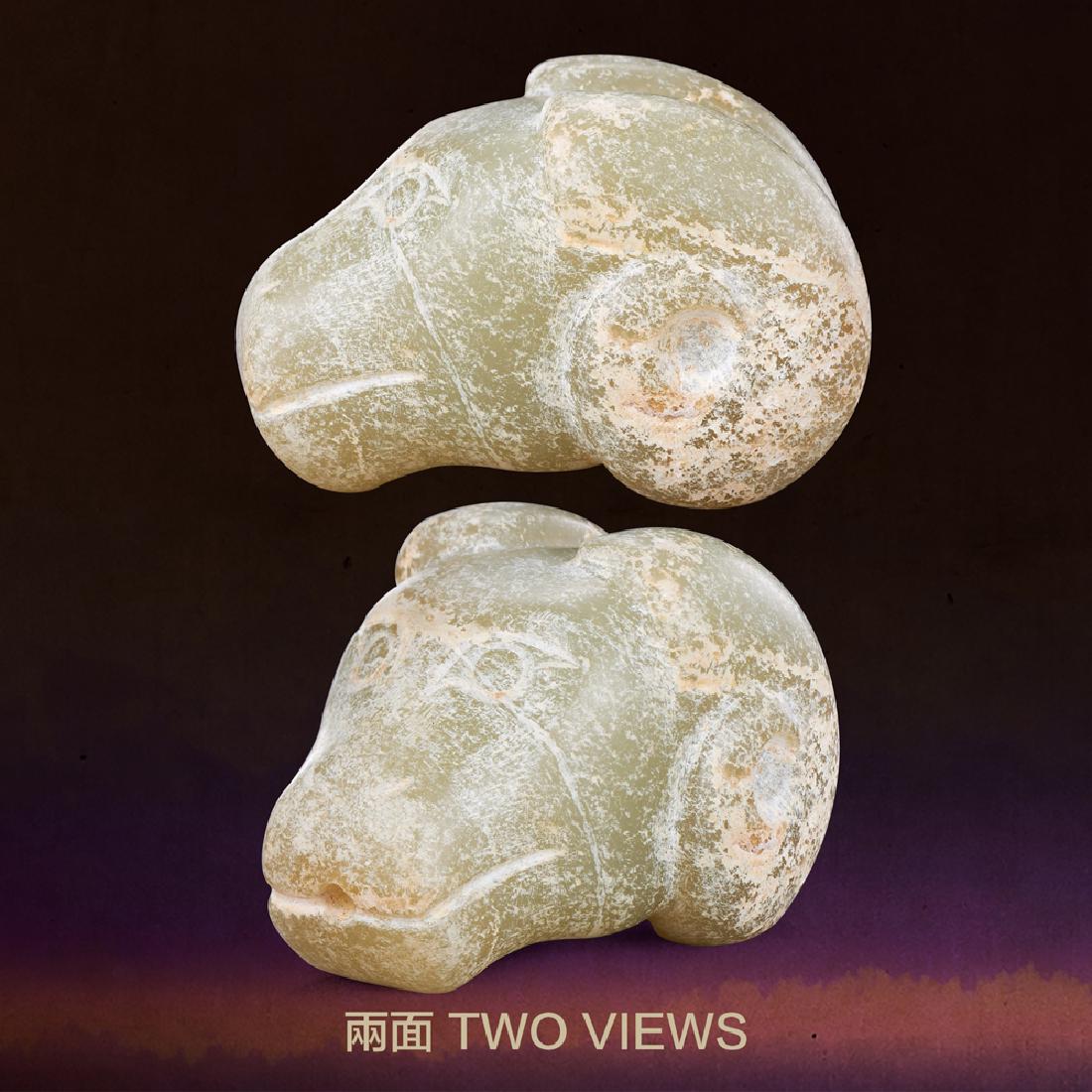 A CHINESE WHITE JADE RAM'S HEAD