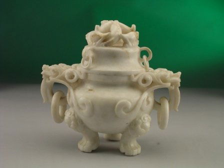A CHINESE WHITE NEPHRITE TRIPOD LIDDED CENSOR, the
