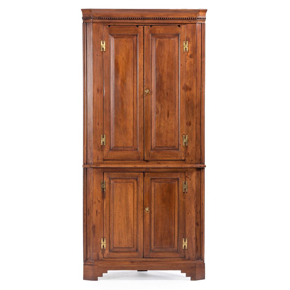 A Chippendale Paneled Walnut Corner Cupboard