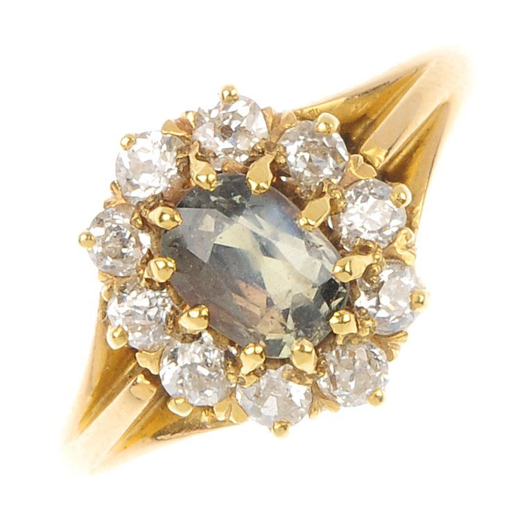 A chrysoberyl and diamond cluster ring.