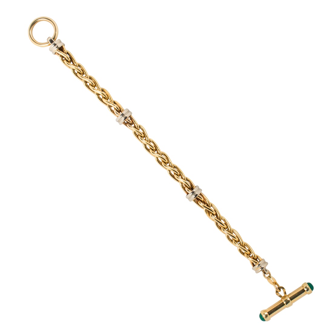 A chrysoprase and 14k gold toggle bracelet
