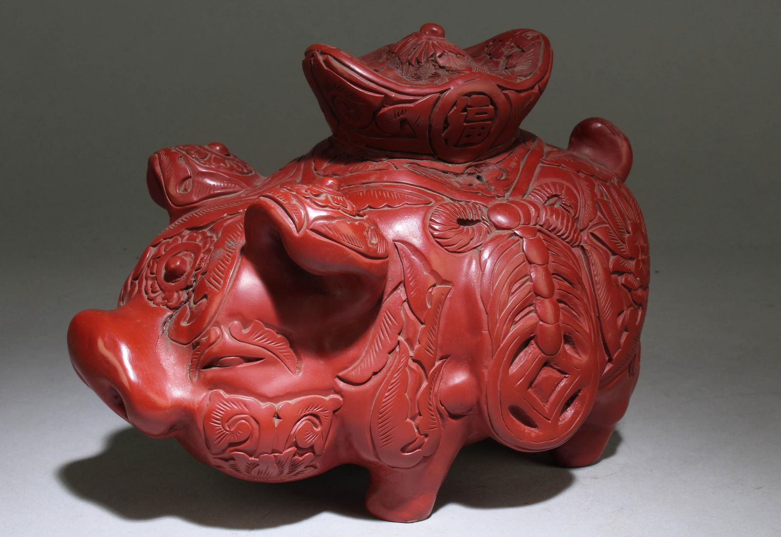 A Cinnabar Lacquer Pig Ornament