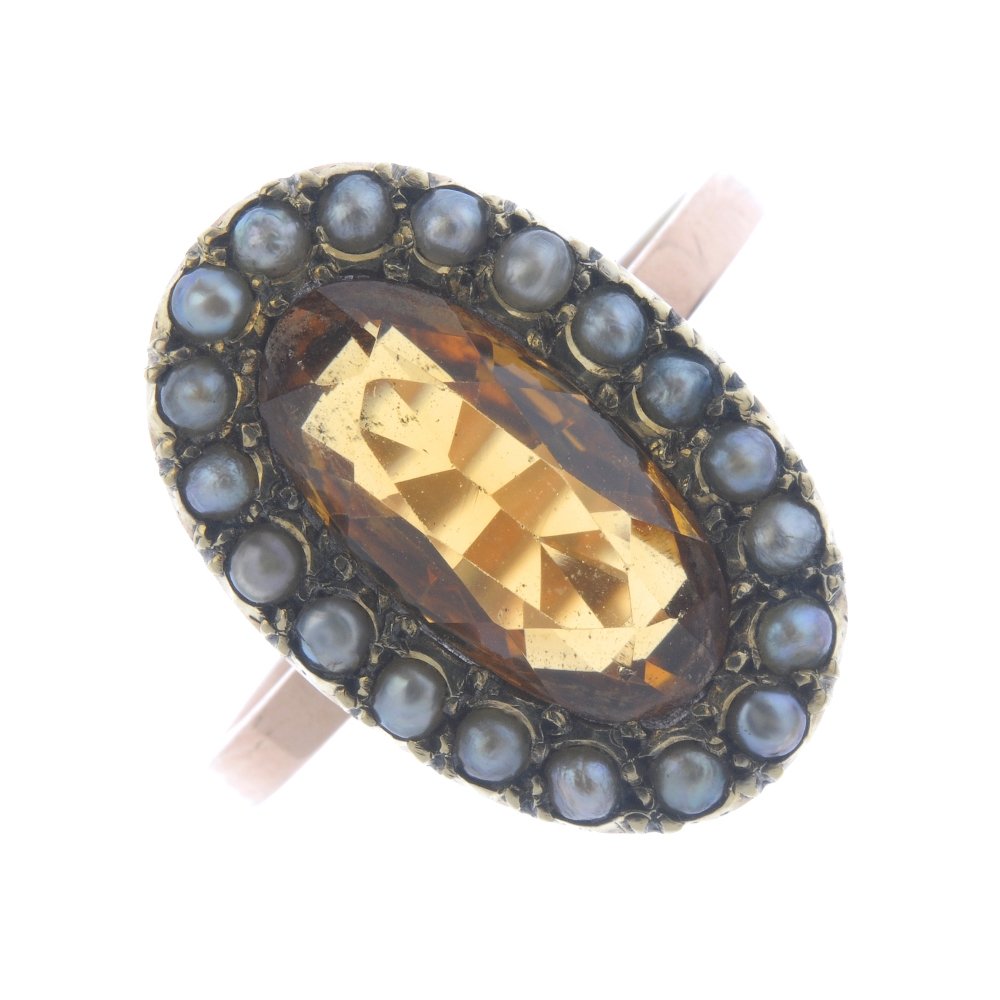 A citrine and split pearl cluster ring. The oval-shape