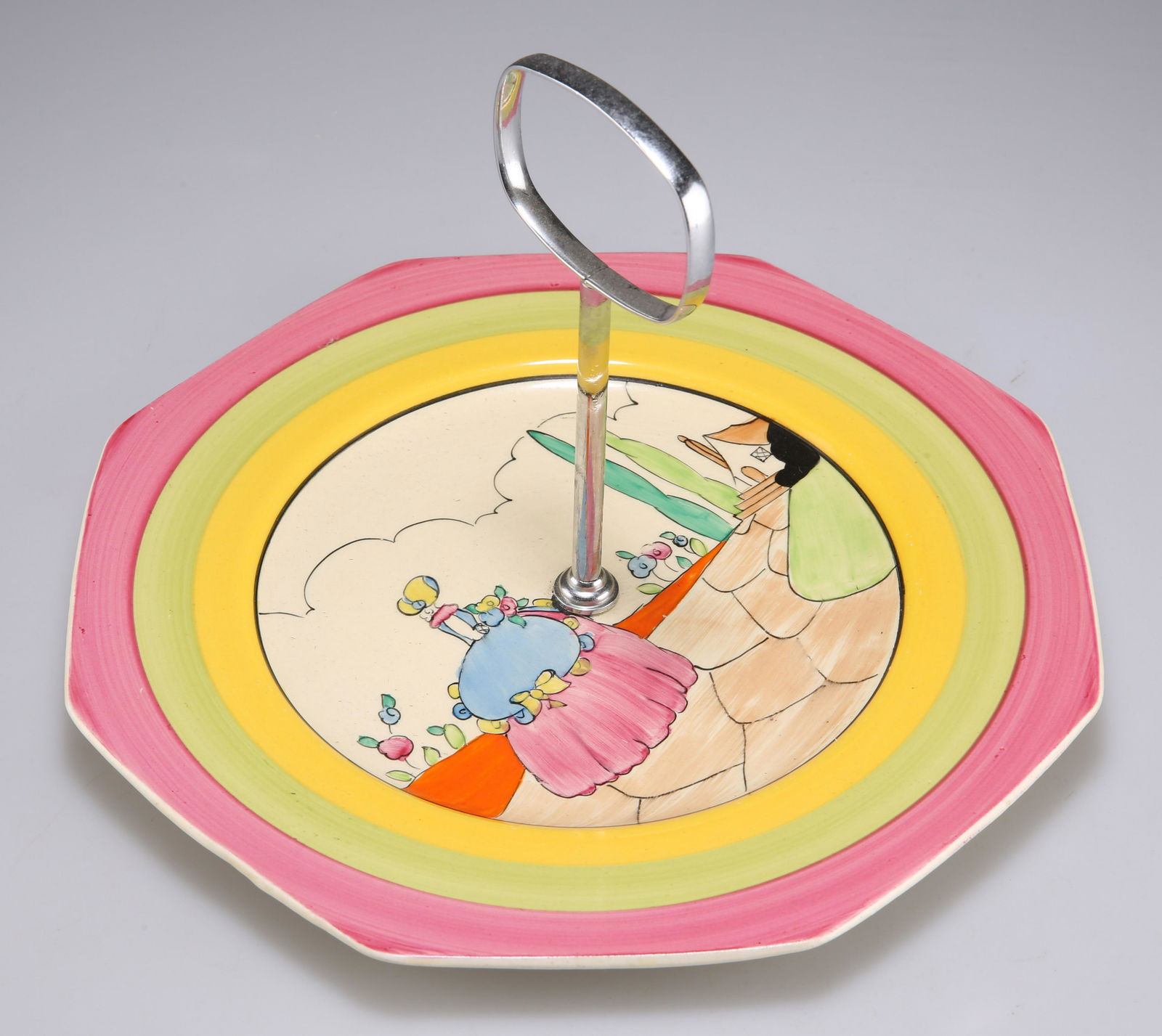A CLARICE CLIFF APPLIQUE BIZARRE IDYLL PATTERN CAKE STAND