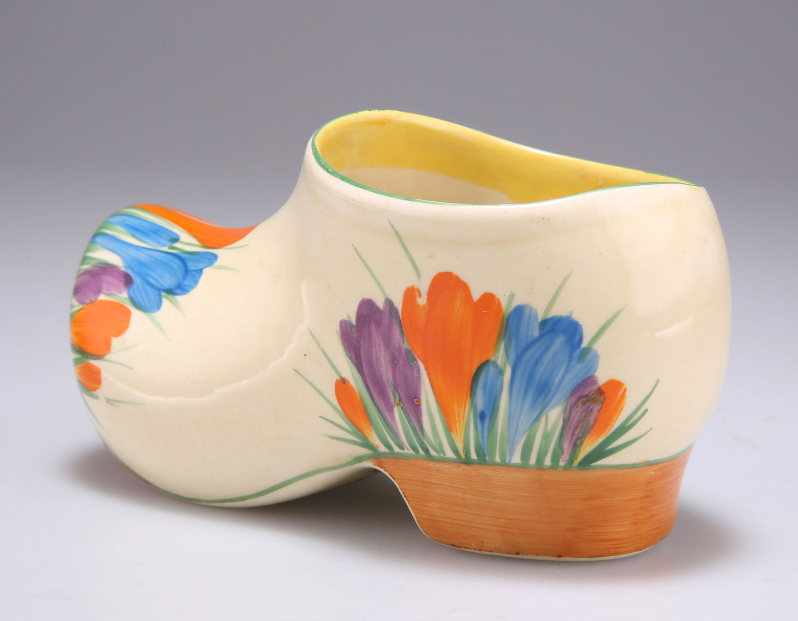 A CLARICE CLIFF BIZARRE CROCUS PATTERN SABOT CLOG