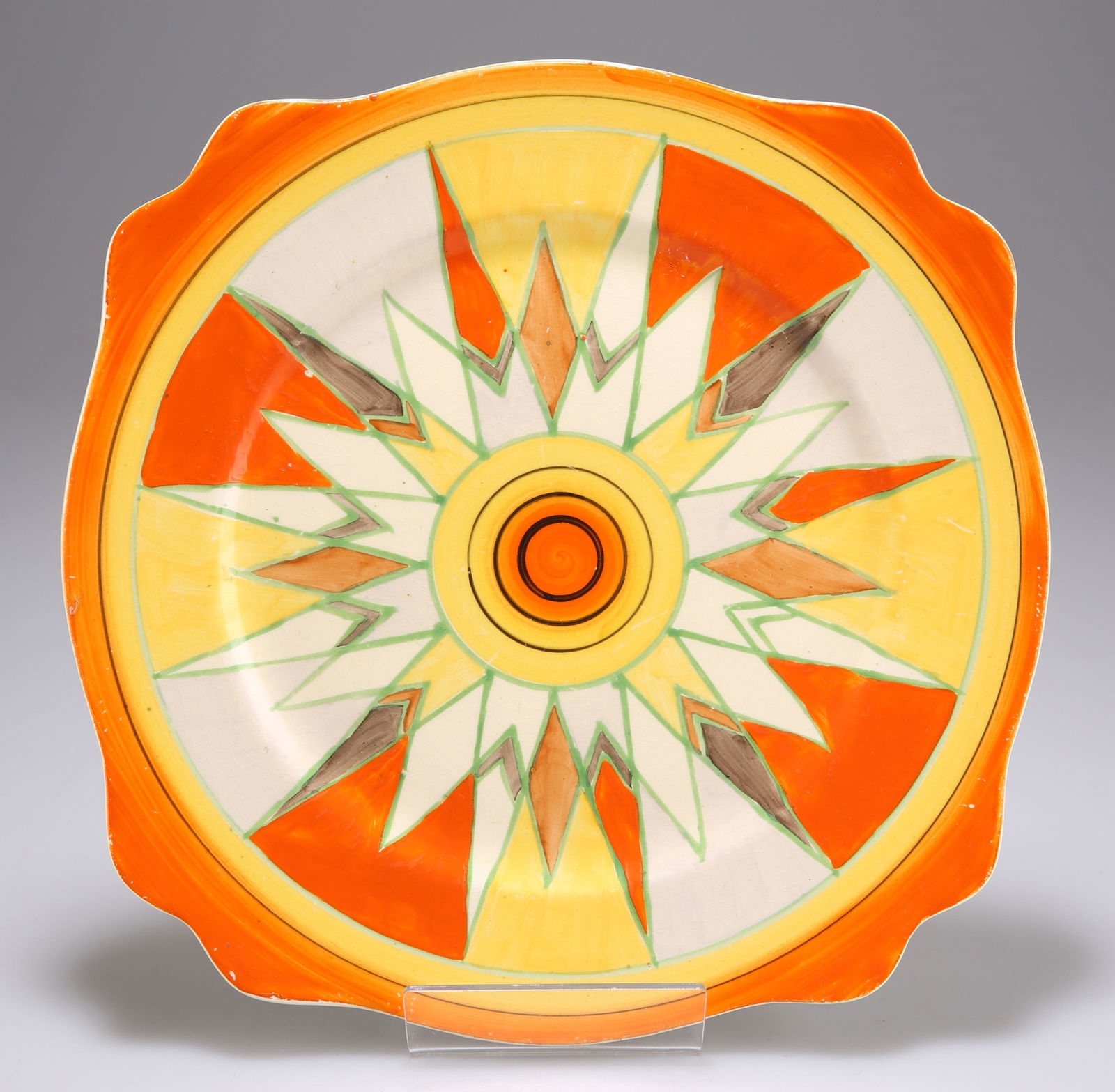 A CLARICE CLIFF SUNGOLD PATTERN LEDA PLATE