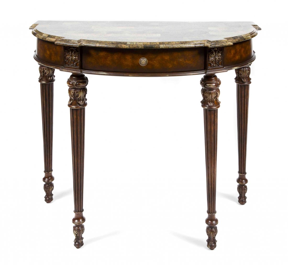 (2) NEOCLASSICAL STYLE SPECIMEN MARBLE-TOP RAM'S HEAD CONSOLE TABLESFeb 22, 2026Demilune Console Or Serving Table French Maison Jansen Ribbon Form Marble topGeorge III Style Painted Wood Console TableFeb 18, 2026Louis XV Style Kingwood Marble Bouillotte TableMar 19, 2026Maitland Smith Ornate Marble Top Console Table with Carved Feet6 days Left19th Century English Neoclassical Marble Top Library Table with Corinthian Columns6 days Left19th Century English Neoclassical Marble Top Library Table with Corinthian Columns20 hrs LeftAntique Chippendale Mahogany Console Table.1 hr LeftEMPIRE STYLE MARBLE-TOP & BRONZE-MOUNTED BURLWOOD CONSOLE TABLEFeb 22, 2026French Empire Marble Top Mahogany Pier Table, early to mid 19th c., H.- 36 1/2 in., W.- 45 1/2 in.,Feb 27, 2026Maitland Smith 8128-34 Mahogany Console Table with Gold Accents6 days LeftFEDERAL STYLE GILT-DECORATED DEMILUNE CONSOLE TABLE.Feb 19, 2026Frontgate Neoclassical 2 Drawer Mahogany Console Table with Brass Hardware2 days LeftMarble Top Rococo Style Mahogany Table With Carved Paw FeetMaitland Smith Distressed Marble Top Console Table Georgian Style5 days LeftButler Astor Demilune Console Table Cherry Veneer Elegant Design6 days Left