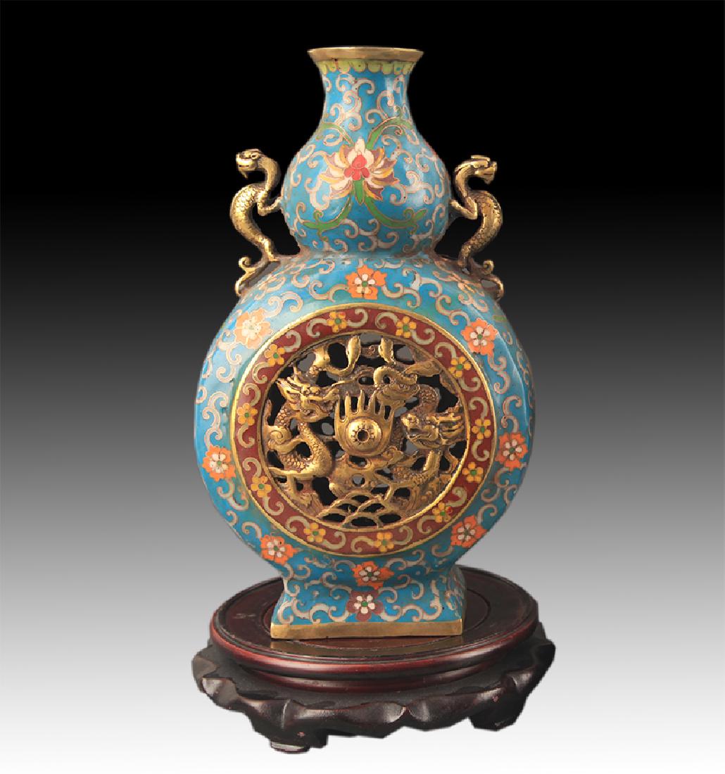 A CLOISONNE ENAMEL CUCURBIT SHAPE BRONZE VASE