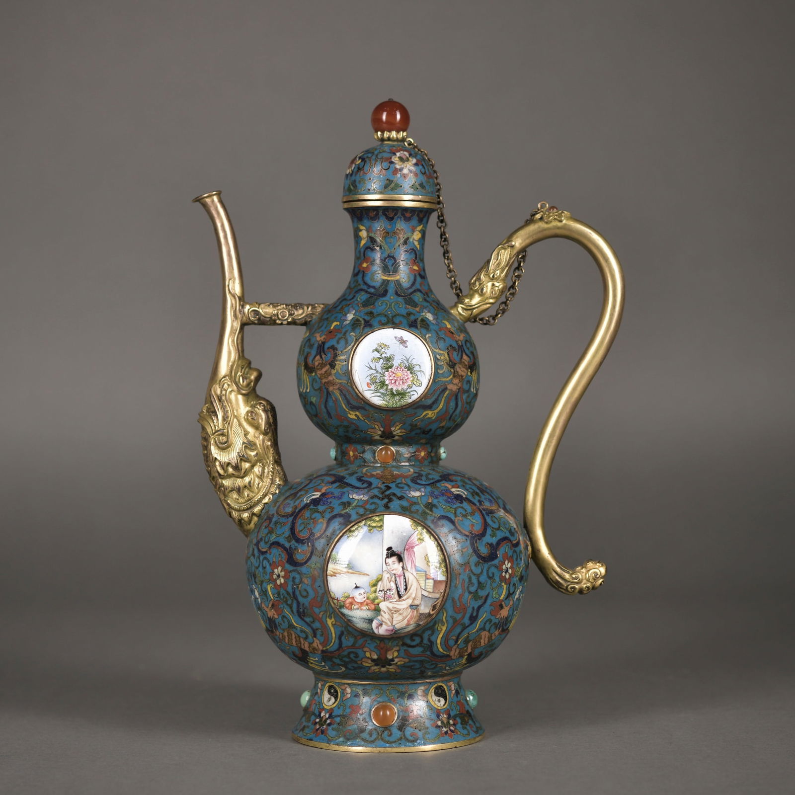 A Cloisonne enamel 'figure' winepot