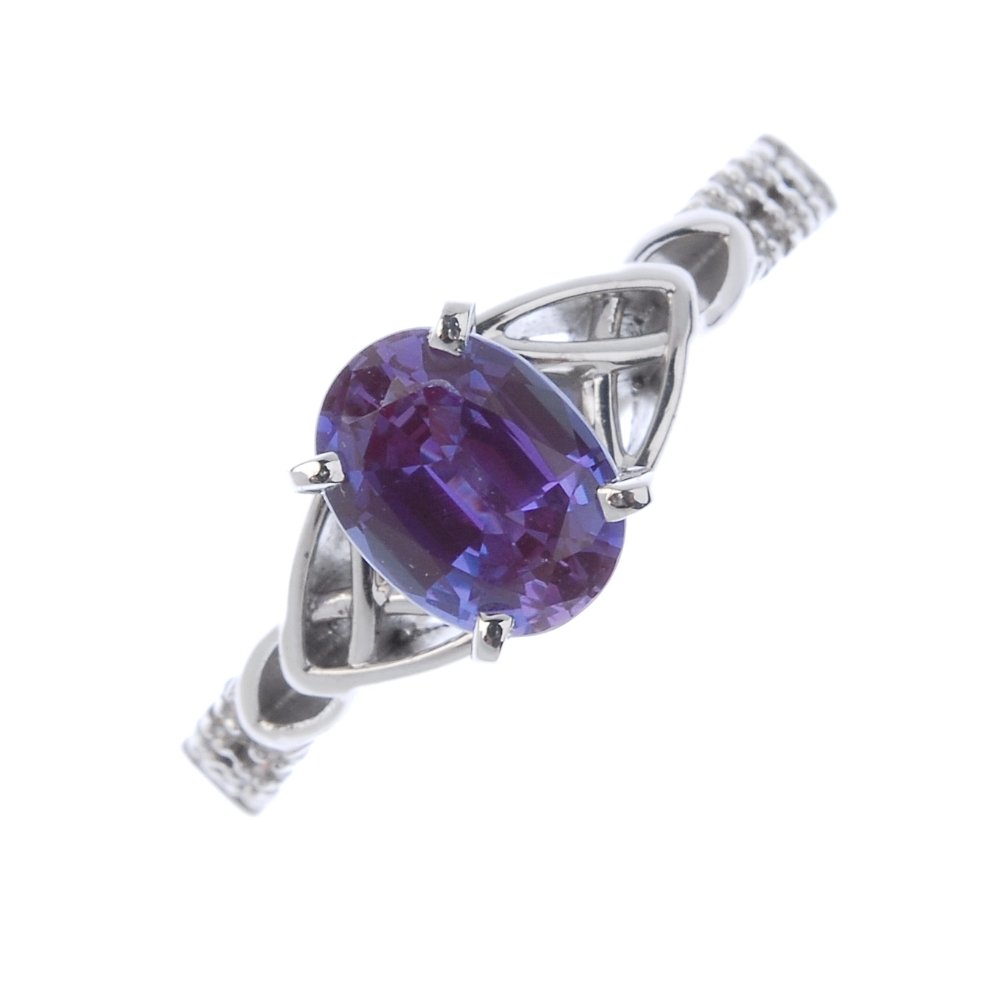 A coated topaz and diamond ring.