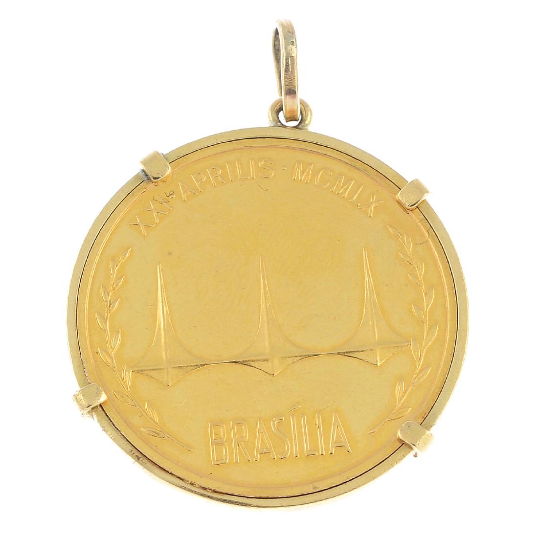 A coin pendant. Dated 1960. Depicting Juscelino