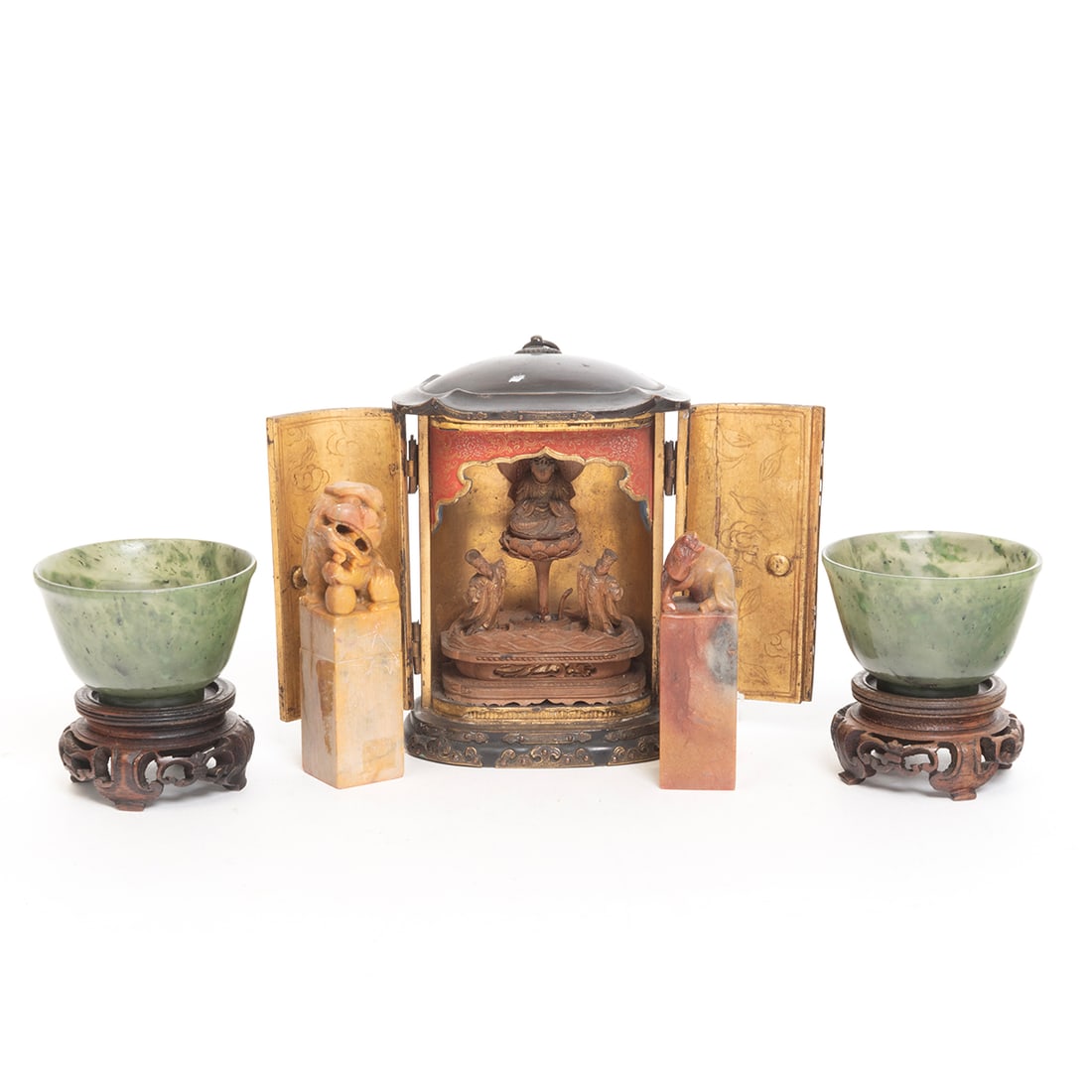 French Blue Opaline Glass Jewelry Casket Coin Box1 day LeftChinese Carved & Pierced Jade Hardstone CarvingMar 17, 2026ANTIQUE FIGURAL CAST BRASS BLACK AMERICANA INK WELL4 days LeftFranz Hofstotter for Loetz, Rare Phanomen inkwell (Gre 358)Mar 19, 2026(4) GLASS OCTAGONAL INKWELLSMar 22, 2026Chinese Carved Jade Sleeping Pig2 days LeftAMERICAN THREE-MOLD BLOWN OLIVE GREEN GLASS INKWELL. 2"h. 2.5"d.Mar 19, 2026ZANESVILLE SWIRLED AMBER GLASS MOLDED POCKET FLASK. 5"h.Mar 19, 2026Art Deco Metal Mounted Cranberry Glass Inkwell3 days Left19th-century Victorian Bronze Inkwell with Winged Grifins and an Integrated Pen Tray.6 days Left(4) GLASS INKWELLSMar 22, 20261L Orange Glass Stein, Pewter Overlay Handle & LidMar 21, 2026Baccarat Perfume Bottle Tea Caddy LotMar 28, 2026A French Gilt Bronze and Porcelain Inkwell1 day LeftThree Chinese Carved Stone Seals, Two Chicken Blood Stone2 days LeftAntique Chinese Nephrite Jade Bi Disc4 days Left