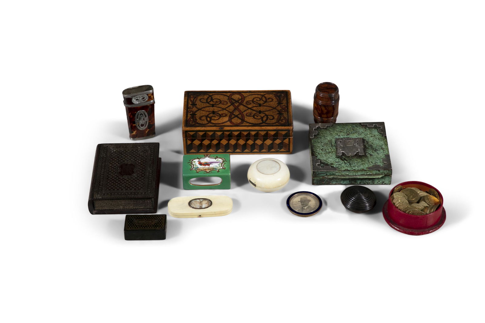 LOT ANTIQUE BRONZE BOXES, VANITY ITEMS, ETCMar 07, 2026Lot 6 19th C Lithographed Tin Christmas BoxesMar 07, 2026ASSORTED ANTIQUE AND COLLECTIBLE ARTICLES, LOT OF TENMar 04, 2026Lot of 5 Asian Brass & Enamel Boxes.5 days LeftVINTAGE / CONTEMPORARY ROLEX AND OTHER EMPTY WATCH PRESENTATION BOXES, LOT OF 11Mar 04, 2026Estate Lot of 5 Antique Chinese & Bronze: Box, Bottle, Tray, Vase & Leather WalletMar 15, 2026Lot of 8 daguerreotype and ambrotype photographs with cases, mid 19th century. To include: 1) "Oreo"6 days Left19th/20th Century Women's Vanity Make-up Sterling Silver Lot (6)Mar 28, 2026Various Items2 days LeftSIX ASSORTED ANTIQUE WOODEN BOXESMar 07, 2026Silver Items, Various Origins2 days LeftAntique lap desk, Chinese lacquer jewelry box, and more boxes3 days LeftCollection of Antique Cutlery CasesCollection Antique Desk or Vanity Boxes5 days LeftCollection - 15 miniature boxes / pillboxes - including silver,Mar 13, 20264 Snuff BoxesMar 14, 2026