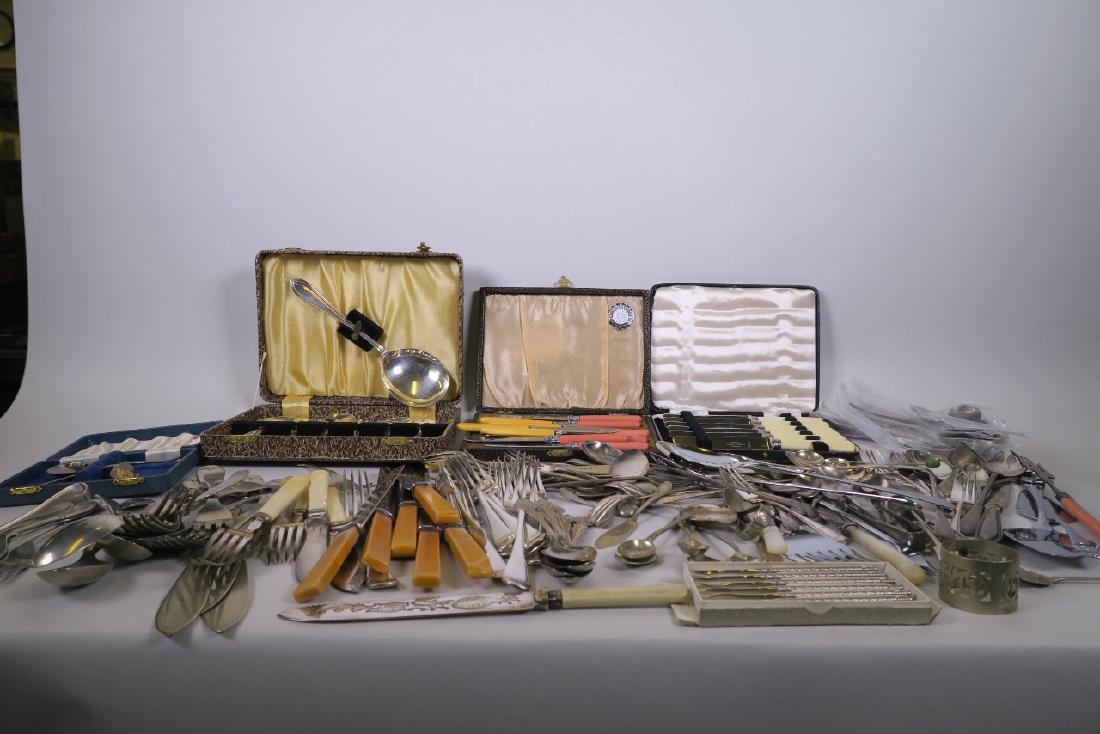A collection of miscellaneous flatware including boxed