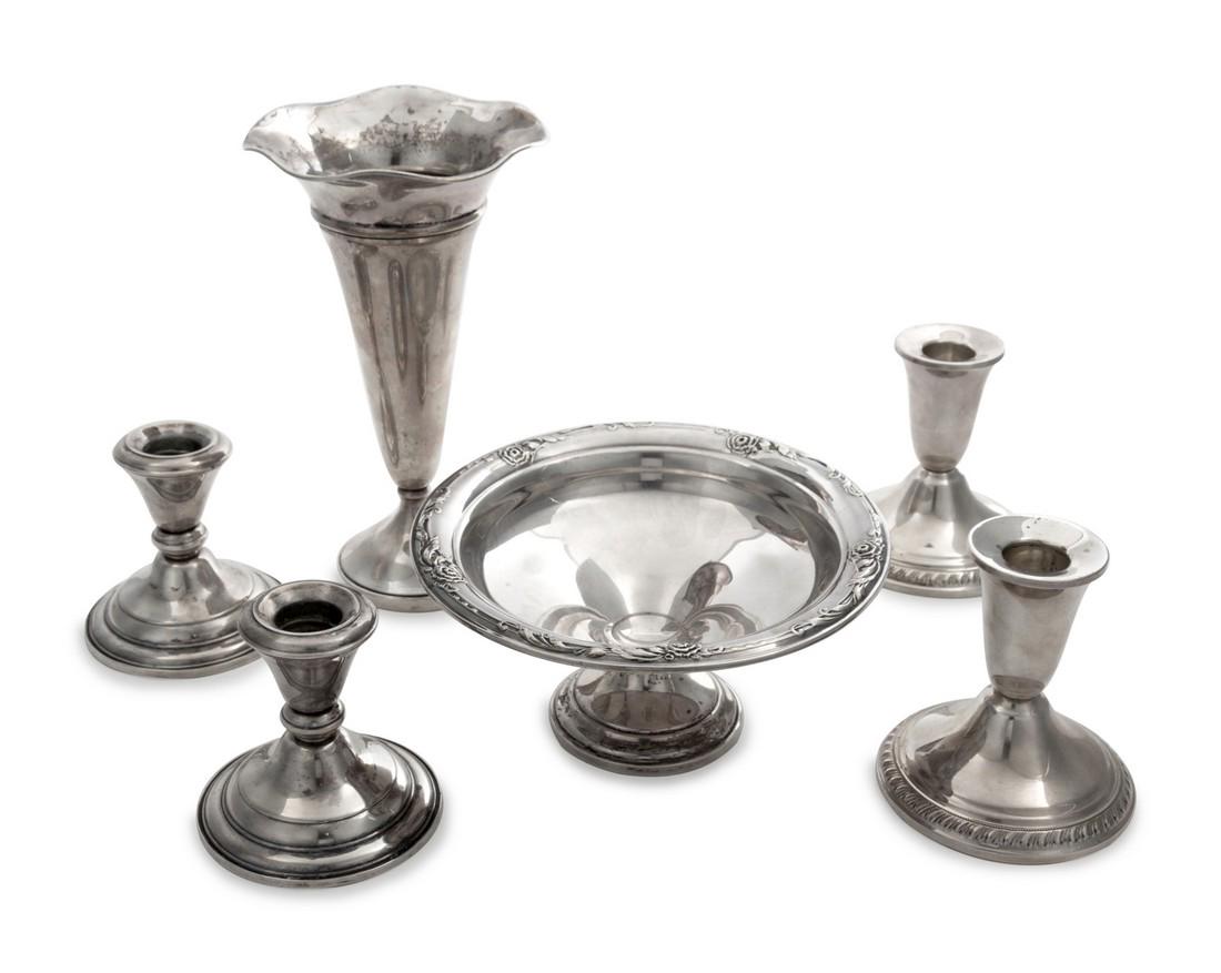 Group Lot of Silverplate19 hrs Left4PC LOT WEIGHTED STERLING SILVERMar 07, 20269PC LOT OF STERLING SILVER, 22 T.O.W.Mar 07, 2026Vintage Pewter Tableware Lot: John Somers, Wilton Columbia, Empire, KSFeb 22, 2026(17) COLLECTION OF STERLING, .800 SILVER & WEIGHTED STERLING TABLE ARTICLESFeb 22, 2026Sterling Silver Estate TablewaresFeb 24, 2026Collection of silver consisting of pepper and salt shakers, jugs, bell, bowl and statue of a boy,4 days LeftEight Sterling Silver Miniature Urn From CupsFeb 21, 2026(9) STERLING SILVER WEIGHTED CANDLE HOLDERSFeb 22, 20265 Sterling Weighted Candlesticks, 1 Cream & 2 SugarsFeb 26, 2026Group of Weighted Sterling SilverFeb 21, 2026(6) STERLING SILVER WEIGHTED CANDLEHOLDERSFeb 22, 20264 Sterling Silver Table Articles and an Oyster SaltFeb 26, 2026(8) STERLING SILVER WEIGHTED CANDLE HOLDERSFeb 22, 20267 Sterling Silver Table ArticlesFeb 26, 20268 Sterling Silver Baby and Table ArticlesFeb 26, 2026