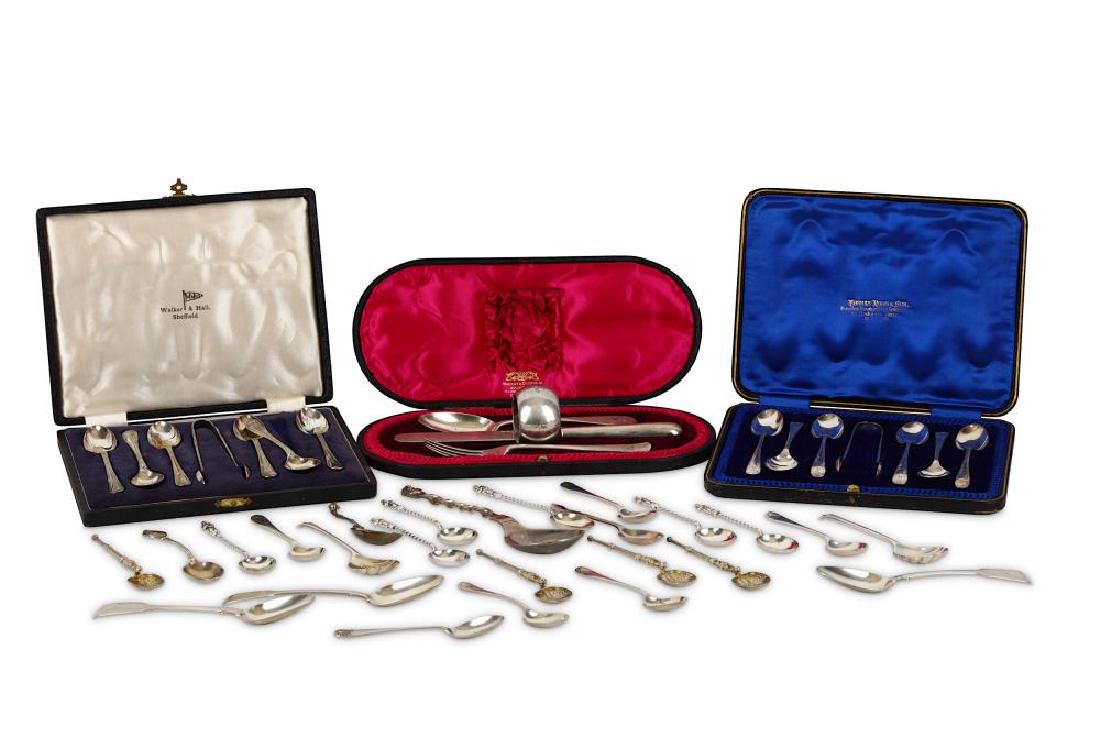 A collection of silver flatware, including cased sets