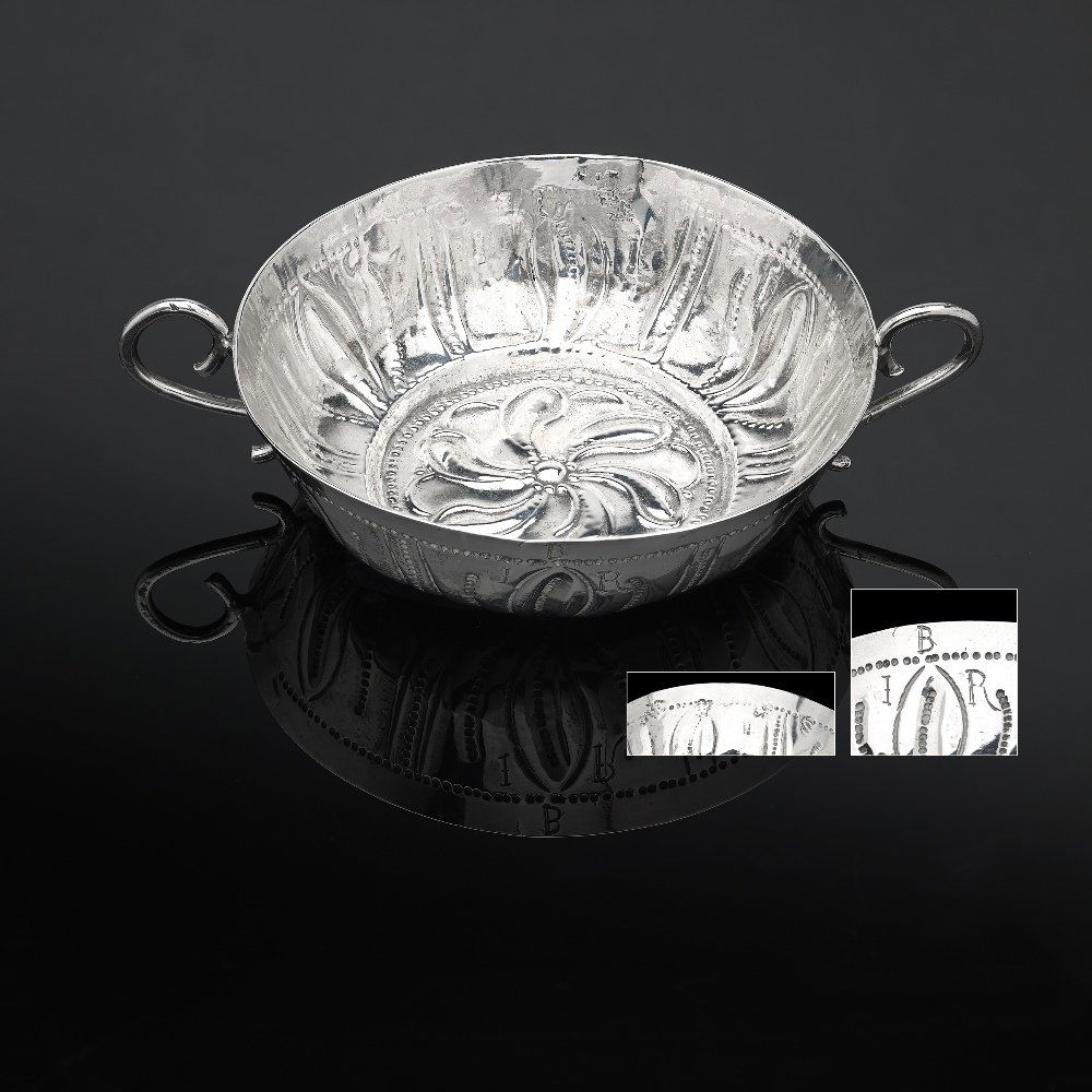 A Commonwealth silver twin-handled wine taster.