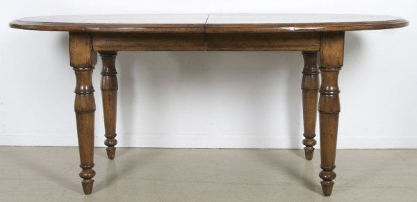 SoldHOLLY HUNT STYLE DINING TABLEHOLLY HUNT STYLE , EXTENSION DINING ROOM TABLE WITH TWO LEAVES. LEAF COVERS ARE MARKED MAXINE SNIDER. SMALL REPAIR TO ONE LEG, GOOD OVERALL CONDITION. 87" L x 32" W x 30" H. WITH 2 18" LEAVES. THIS ITSee Sold Price