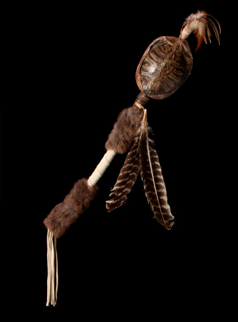 A CONTEMPORARY LEATHER WRAPPED TORTOISE SHELL RATTLE