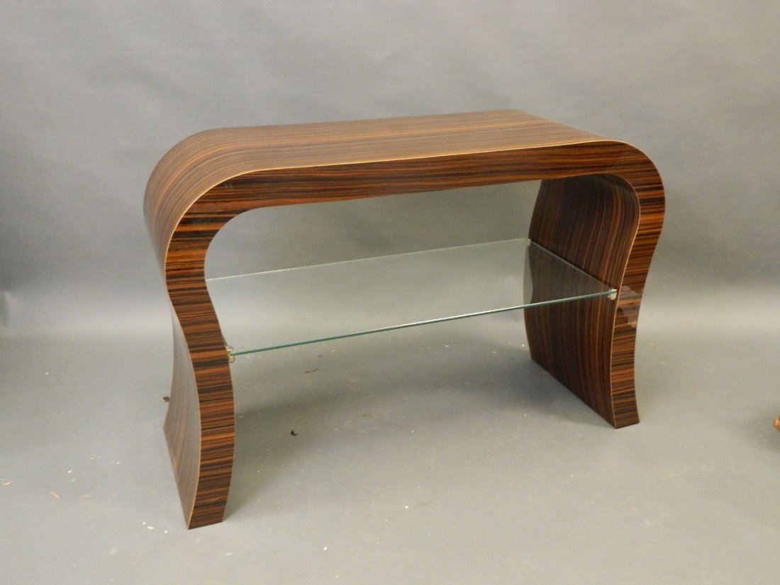 A contemporary shaped two tier side table, 36" x 14",