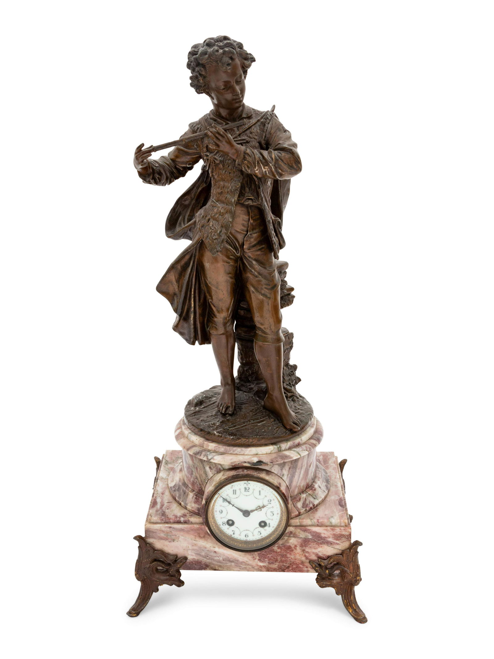 A Continental Bronze and Marble Figural Clock