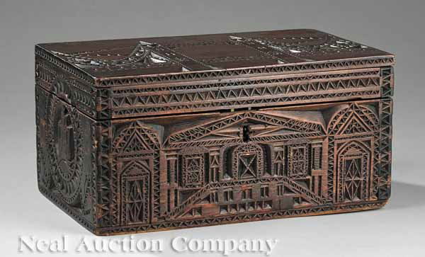 18thC heavily carved lift top pine box w wooden pintil hinges in orig painted surface - 10 1/2" tallFlying Pig Auctions4.7(395)$80(5 bids)2 days Left