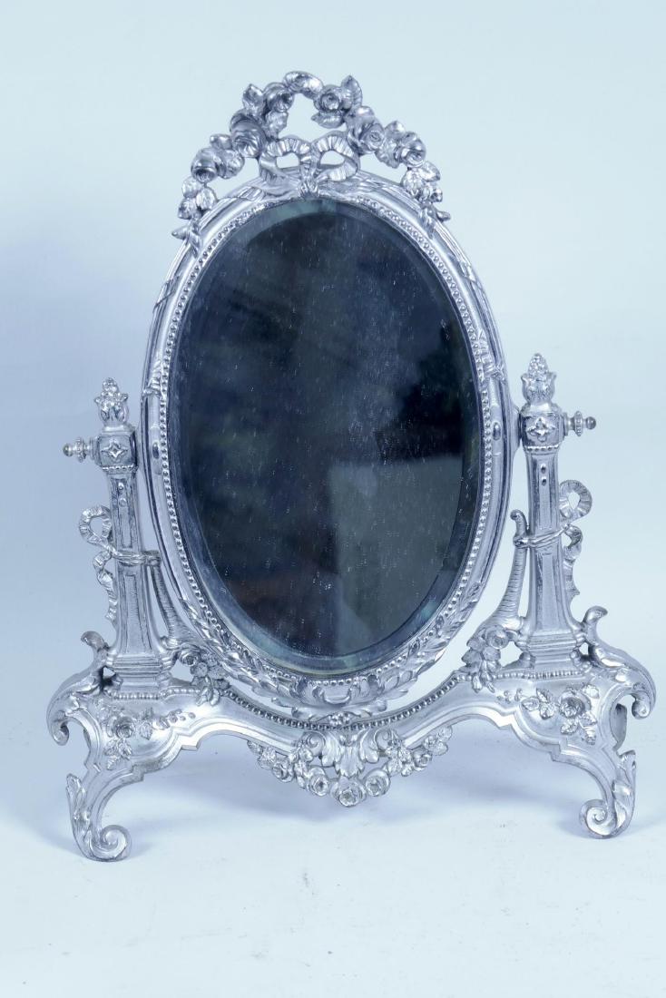 A Continental cast metal easel frame dressing mirror