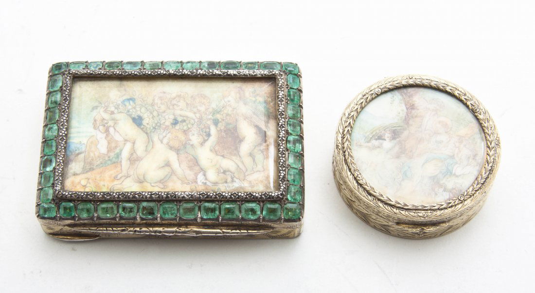 Swarovsky Miniatures & Others Gilt Boxes 7pc LOTFeb 26, 2026LOT OF ROMAN MANNER CARVED GREEN GLASS INTAGLIOSMar 01, 2026Vintage Accessory Group (7), Fancy Gold-tone Compacts, Lighter, Gucci Perfume+Feb 26, 2026Three Collectibles with Porcelain MiniaturesMar 05, 2026Antique French Gilt Bronze and Green Enamel Vanity Powder Trinket BoxFeb 21, 2026Pair Of CT Limoges Blue Jasperware Framed Cherub PlaquesFeb 28, 2026Austria circa 1930 by LW An early 20th century 935 standard silver and enamel cigarette case4 days Left.800 Silver Portrait CompactMar 14, 2026Birmingham 1813 by Joseph Willmore A George III sterling silver gilt snuff box4 days LeftAntique Boxed Silver Gilt Large Gemset Brooch And Earrings SetExquisite 19th Century Unique Silver and 18kt Gold Pendant-Brooch with Round Emeralds, 11.68gr7 days Left(5) Vintage CompactsFeb 21, 2026EMPIRE STYLE MALACHITE PORCELAIN GILT BRONZE CASSOLETTESMar 07, 2026German Sterling Silver Repoussé Snuff Box Pendant, Figural Scene, 19th Century7 days LeftMINIATURE GILT METAL POWDER BOX12 hrs LeftVienna Gilt-Heightened Porcelain Tray4 days Left