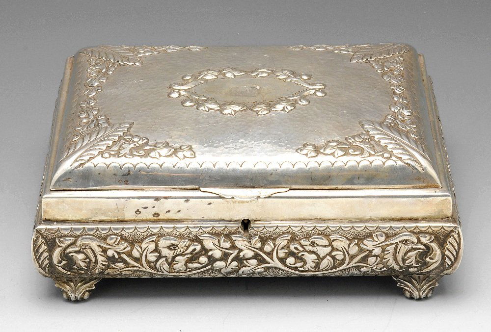 Late Qing/Republic Period, Bamboo Filigree (Reed) Carved Box with Landscape and Figure MotifsMar 02, 2026Vintage Silver Plate Jewelry BoxMar 10, 2026Silverplated Dresser BoxMar 04, 2026Gorham Rococo Sterling Table Box15 hrs LeftJean-Jacques Prevost 1766 18K Gold Floral Jewelry Box5 days LeftJean-Jacques Prevost 1766 18K Gold Floral Jewelry Box3 days LeftAntique Cylinder Musical Box with Inlaid Wooden Case1 day LeftAntique Continental Silver Cherub & Insect .863 Fine Silver Trinket Box7 days LeftIndian Brass Mounted Carved Wood ChestMar 26, 2026A WMF German Art Nouveau jewelry casket, circa 1905Mar 15, 2026A Precious Gilt-Bronze Silver White Jade-Inlaid 'Bird& Flower' BoxMar 06, 2026FRENCH ORMOLU-MOUNTED & LACQUERED JEWELRY CASKET / VANITY BOX12 hrs LeftAntique Art Nouveau Caviar Server From Argentina Alpaca Cica 1900Italian 925 Sterling Silver Floral Leaf Chased Spice Besamim Box6 days LeftBronze Jewelry Casket with Cherub BustsMar 07, 202619th century bronze sarcophagus form jewelry cask. Case with dark/black patina and gilt accents andMar 01, 2026