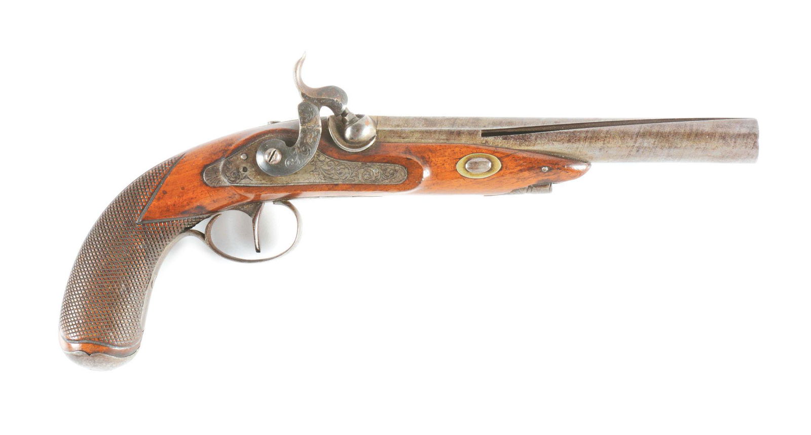 (A) CONTINENTAL PERCUSSION PISTOL CIRCA 1850 WITH