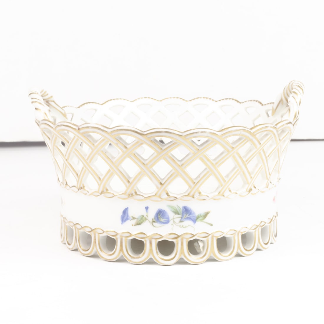 Antique Meissen braided porcelain basket with handles. Hand-painted flowers and golden border. LateChairish Auctions4.5(10.3k)$280