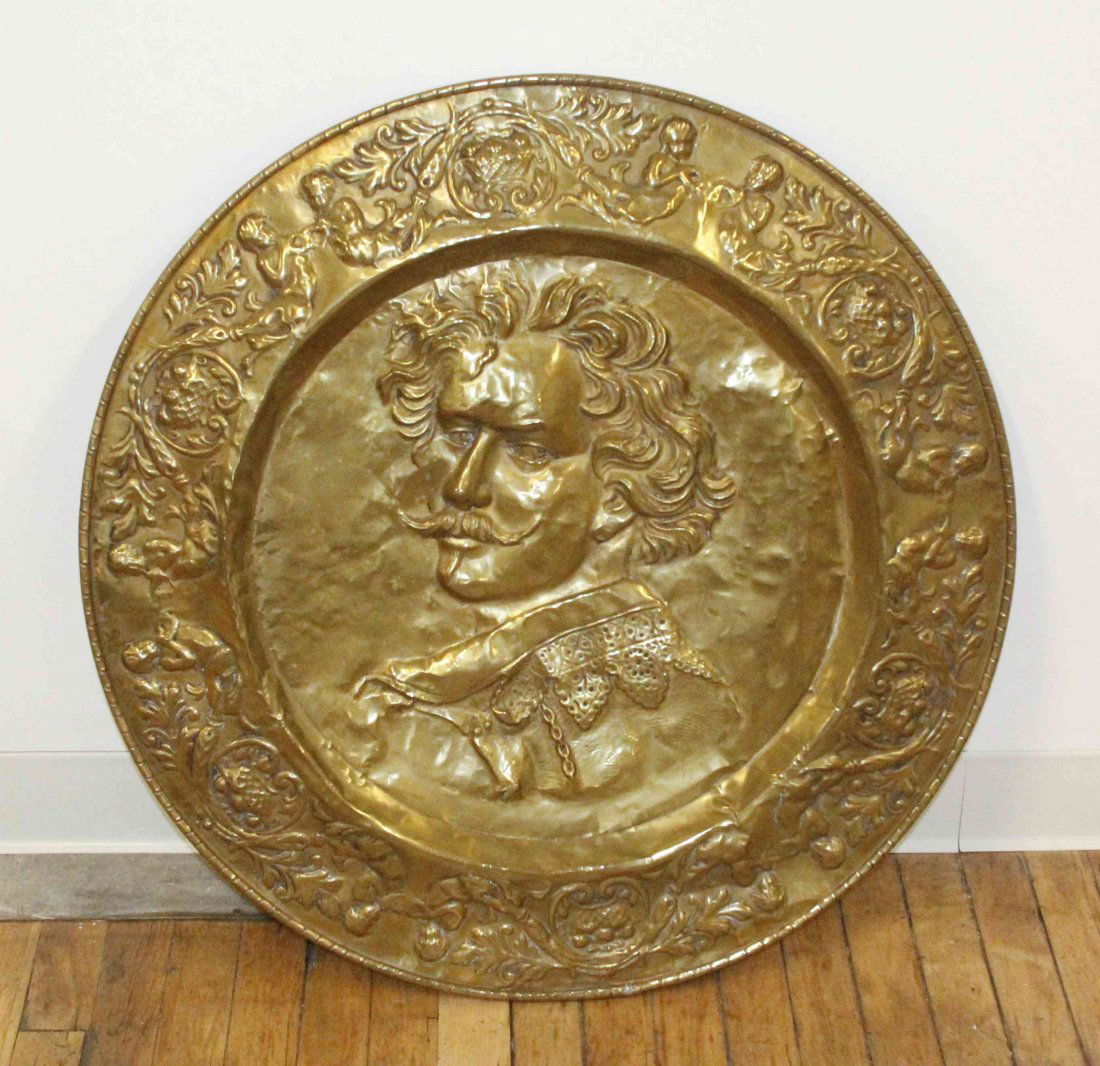 A Continental Repousse Brass Roundel, Diameter 29 3/4