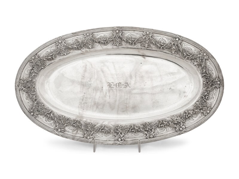 Late Victorian Silver-Plated Footed Serving TrayVintage Silver Plated Serving TrayLarge Vintage English Silver Plated Salver by CavalierAntique Sheffield Silver Plated Oval Gallery Serving Tray c.1900Antique Ornate Silver Plated Pierced Rim Tray c.1900HUGE ENGLISH SILVER PLATED SERVING TRAY / PLATTERMar 07, 2026A French first standard silver oval platter, Victor Boivin, Paris, early 20th century6 days LeftLARGE WILCOX SILVER PLATED SERVING TRAY PLATTERMar 07, 2026ANTIQUE 19th CENTURY FRENCH 950 STERLING SILVER SERVING PLATTER,1850-1899EMBOSSED SPANISH STERLING SILVER PLATTER3 days LeftGEORG ROTH & CO. .800 SILVER OVAL TRAY, C. 19003 days LeftCoronet Silver On Copper Footed Serving Tray6 days LeftSchultze Sterling Repousse Oval Serving Platter7 days LeftA Gorham sterling silver oval serving bowlMar 03, 2026A French first standard silver two-handled tea tray, Emile Hugo, Paris, late 19th century6 days LeftS Kirk & Son Sterling Serving Platter7 days Left