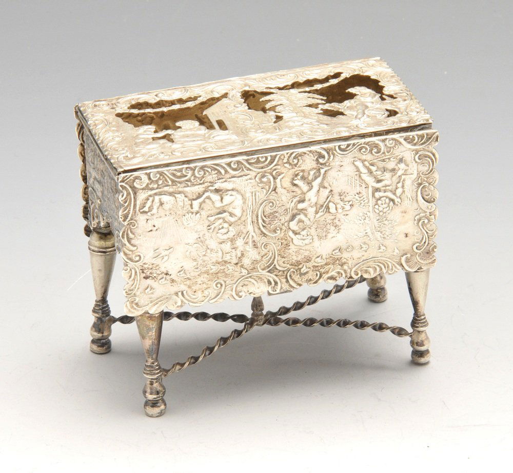A continental silver trinket box modelled as a