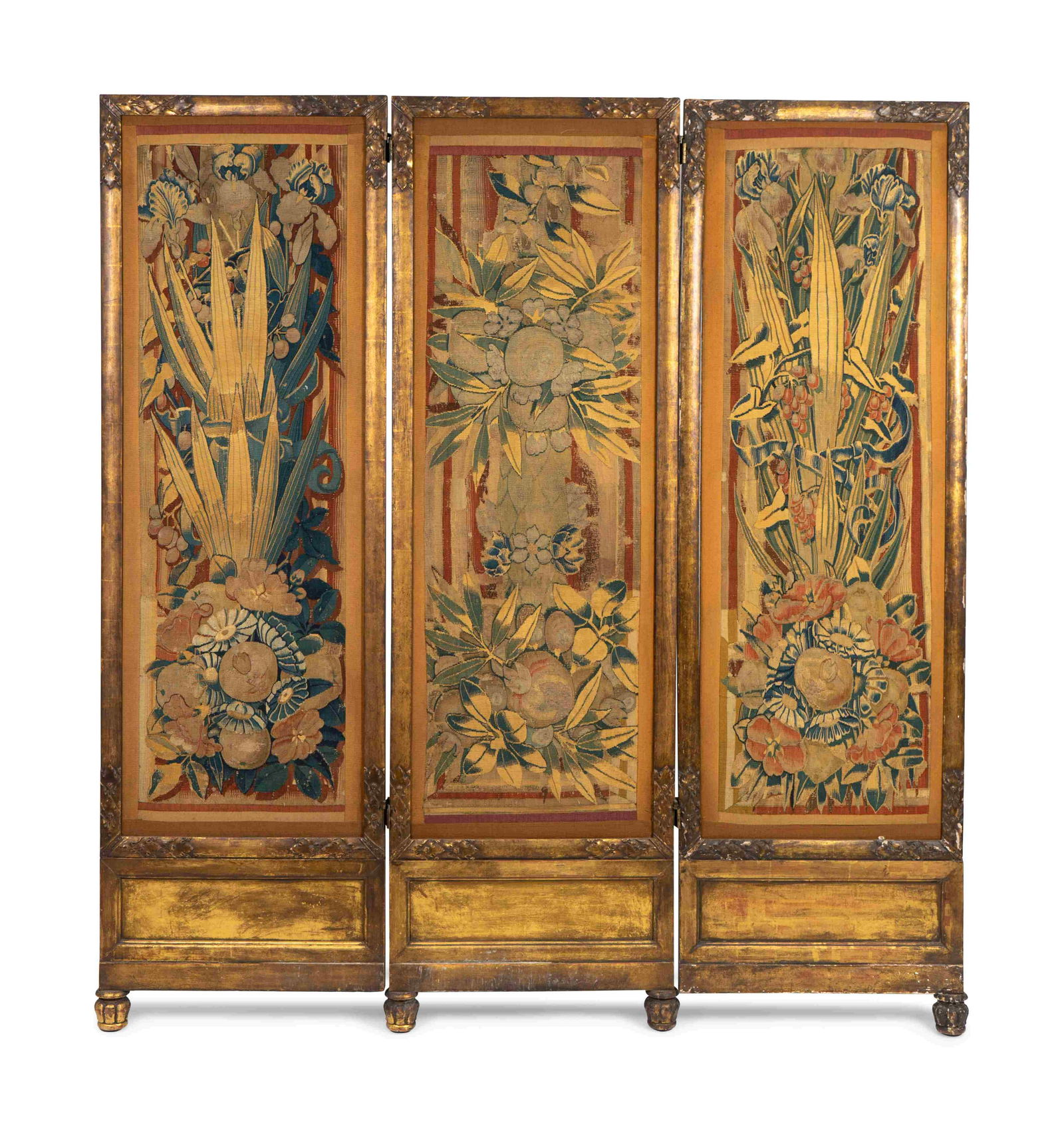 A Continental Tapestry Three-Fold Screen Each panel 76