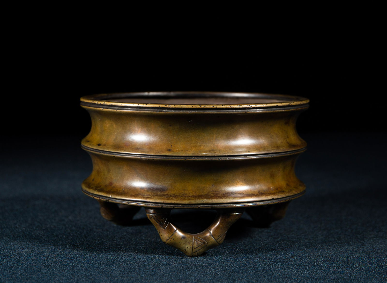 A fine copper three-legged incense burner