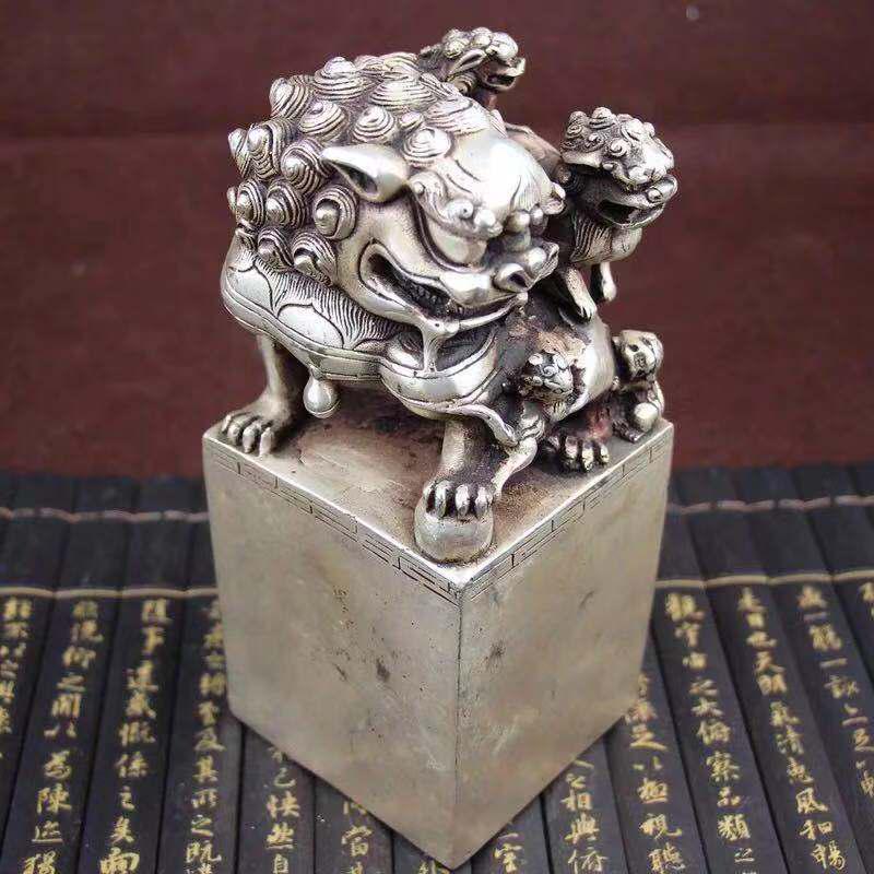 A COPPER GILT SILVER LION SHAPED SEAL