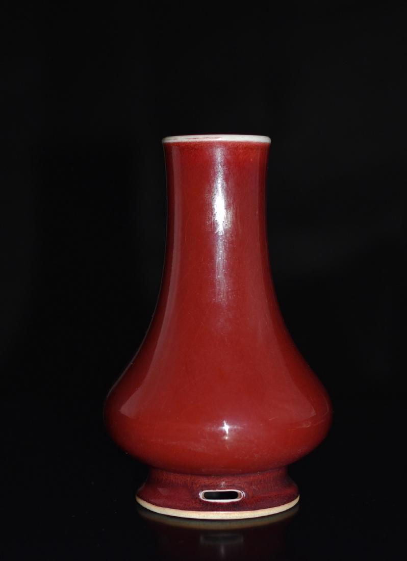 A COPPER-RED BOTTLE VASE WITH INSCRIBE ON BASE