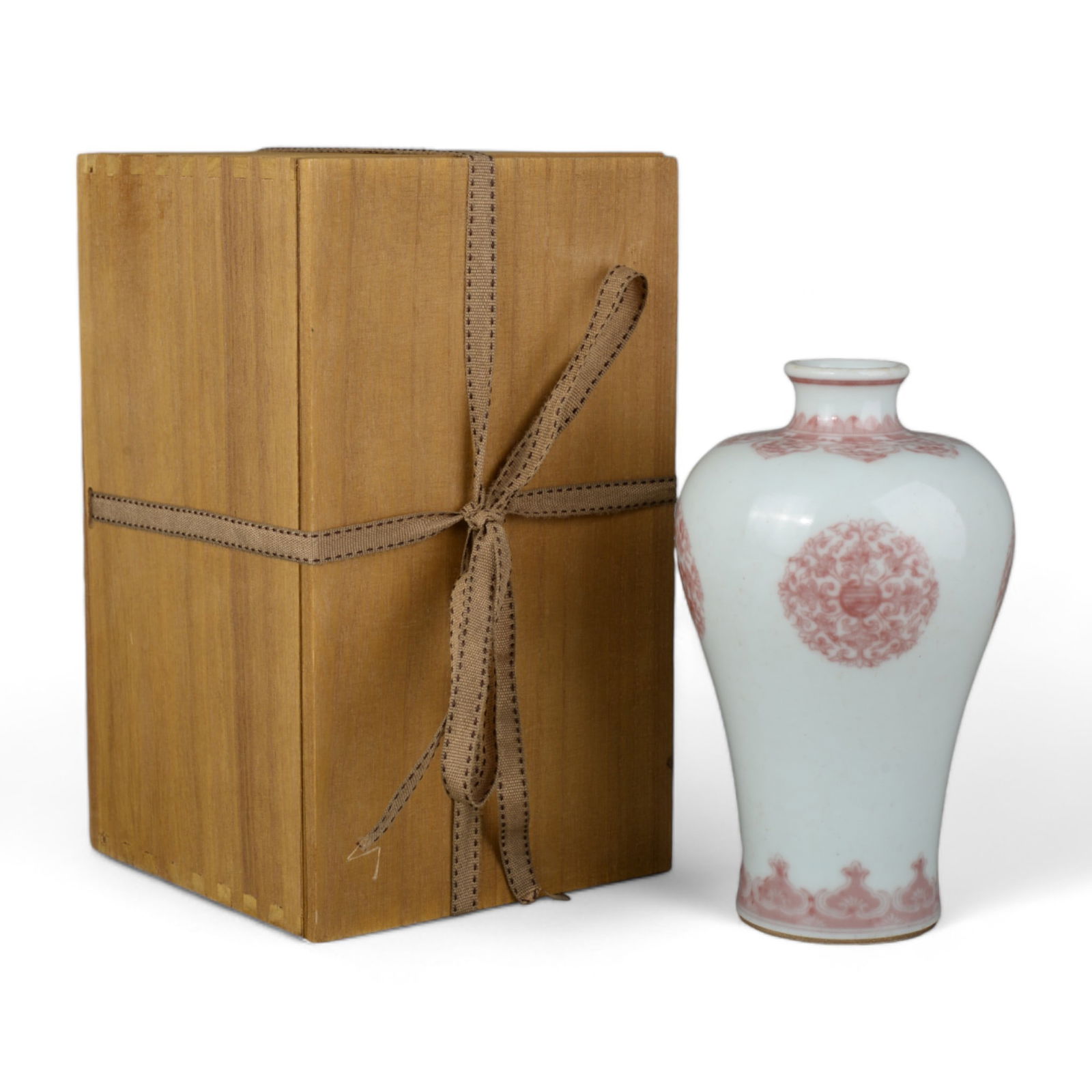 A COPPER-RED-DECORATED BOTTLE VASE, MEIPING