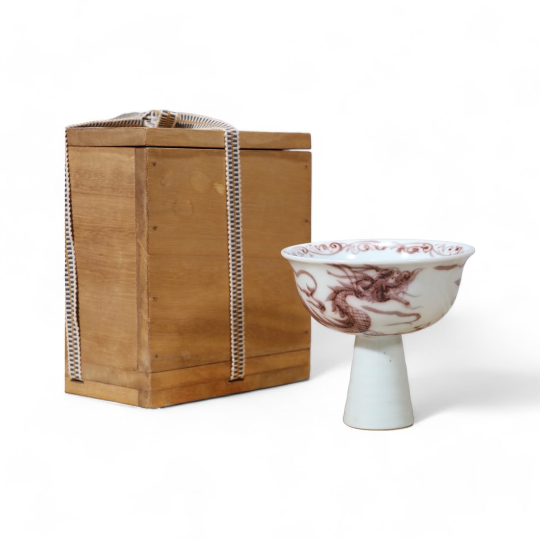 A COPPER-RED-DECORATED DRAGON STEM CUP