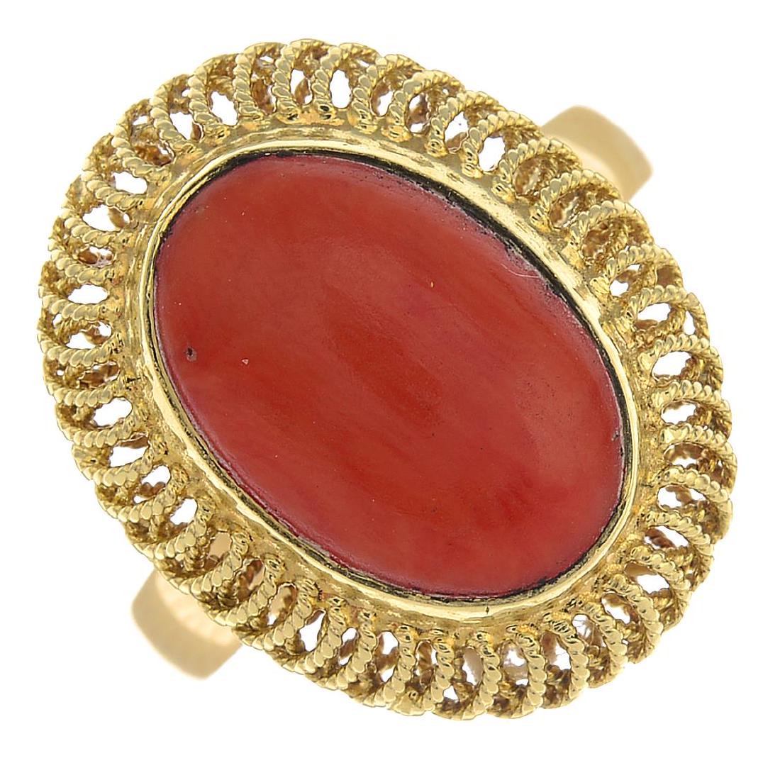 Elegant 18kt Yellow Gold Double-Band Ring with Natural Momo Coral Oval Cabochon - weight2.55grHIGH END GEMS & JEWELS LTD4.3(1)$43014 hrs Left