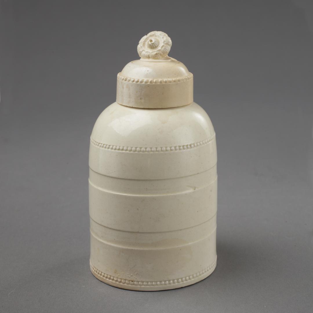 A COVERED CREAMWARE "TEAPOY"